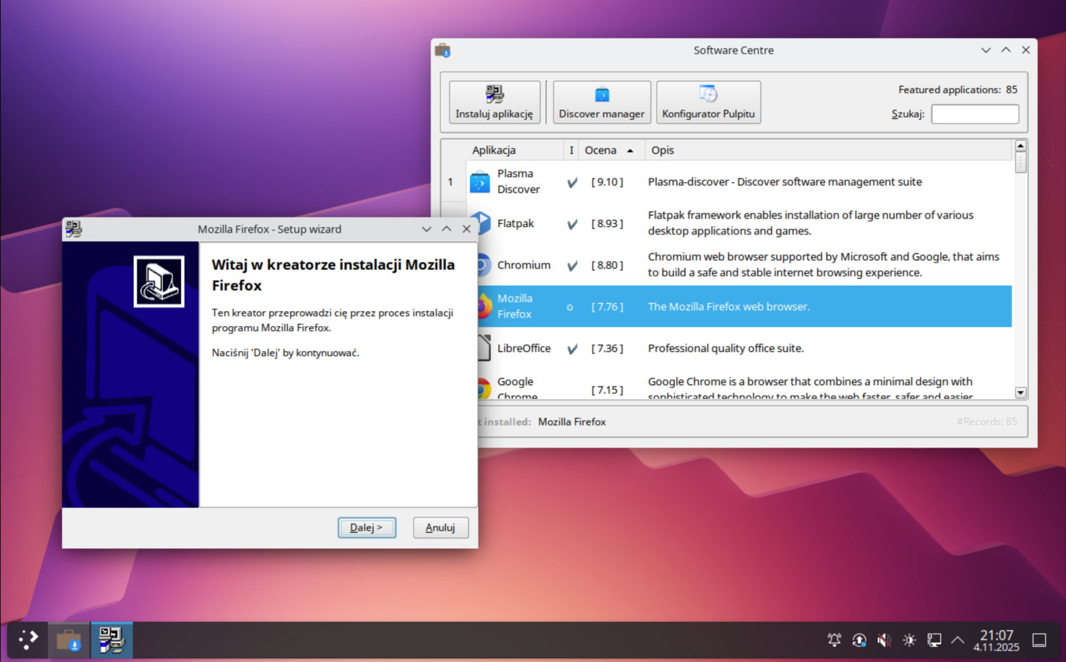 Oczywiście mógłbym tu wymienić więcej dystrybucji, które są chwalone i popularne, ale w moim wypadku większość z nich jest po prostu niestabilna, lub zwyczajnie nie sprawdzała mi się w trakcie użytkowania na przestrzeni lat. I mimo, że systemy takie jak Arch, Ubuntu czy Zorin są popularne i zalecane, to są praktycznie nie spotykane w korporacjach czy większych przedsiębiorstwach. Na końcu i tak zwykle znajduje się oprogramowanie, które bez względu na distro działa podobnie.