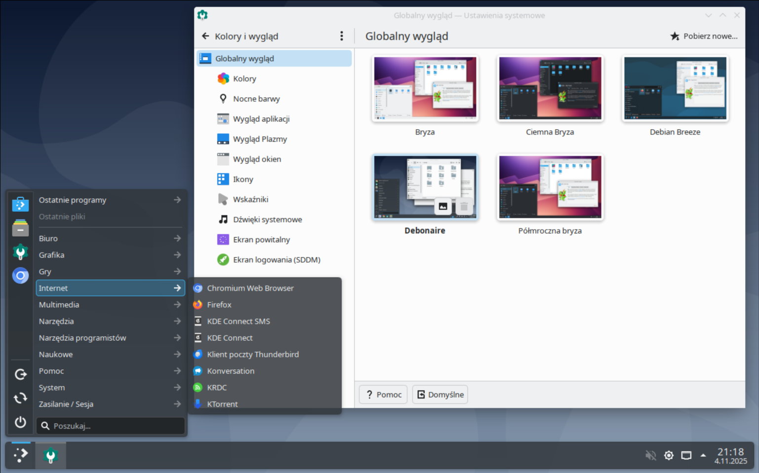 Q4OS – Kolejna dystrybucja bazująca bezpośrednio na Debianie. Na samym początku bardzo autorom zależało na upodobnieniu środowiska graficznego, do tego z Windows. Co prawda interfejs bazuje na dość popularnym menadżerze okien KDE (Plasma), ale jest on łatwo w obsłudze, posiada dużo możliwości konfiguracji, i pięknie wygląda. Zaletą Q4OS jest jednak to, że jest dość szybki, a także posiada sporo narzędzie upodabniających jego wygląd do okien w systemie Windows. Nawet instalacja programów przypomina tą znana z systemu Windows.