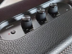 Jakiś czas temu zakupiłem mały głośnik przenośny (czyli taki z akumulatorem), który służy mi do odtwarzania dźwięku z laptopa czy telefonu, oraz okazjonalnie telewizora. Poszukiwałem dobrego odtwarzania częstotliwości środkowych i niskich. Przed zakupem porównałem w jednym ze sklepów kilka urządzeń tego typu: Marshall Kilburn II, JBL Charger 4 i Xtreme 2, Sony XB43 i XB41. Test polegał na odtwarzaniu muzyki z dwóch telefonów połączonych przez Bluetooth do dwóch różnych urządzeń na raz. Odtwarzano ten sam utwór, mniej więcej w połowie, i subiektywnie najlepiej dla mnie z zadania wywiązał się Marshall. Dodatkowym atutem jest fakt, iż nie świeci on diodami na froncie, oraz budowa wydaje się bardzo dobrej jakości.